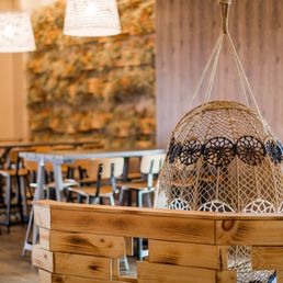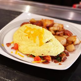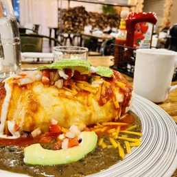 Modern twist on classic breakfast food. So don't expect the normal presentation for some of the main dishes- Burrito and Avocado toast Burrito was huge and can easily be split. Two sauces - one mild and one spicy. Loved it. Nice and hot inside too. Was super tasty. Avocado toast came with bacon, which we didn't order. Bread was too soft and hard to cut with knives (even asked for a steak knife later but daughter gave up). Egg was not runny and was pan fried as opposed to poached. Romano's avocado. Got the corn on the side based on presentation in the photos on their yelp page. Our server was okay- Little slow and inattentive. Food quality was good in my opinion but could have been better. Love the carafes on the table of cool water. Tables have hooks for purses- on one of the sides! Lots of tables. Nice non-plain, modern-craftsman decor.